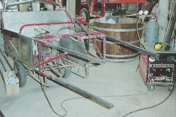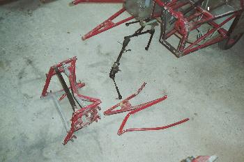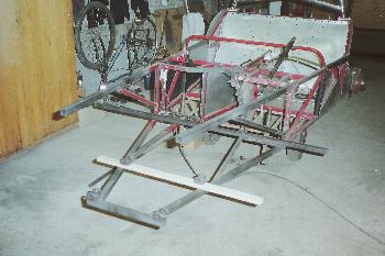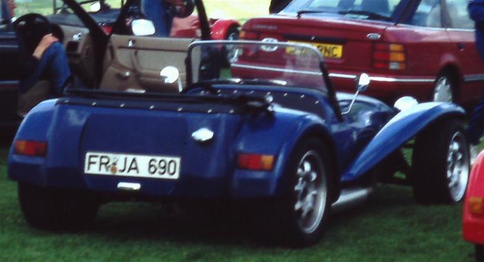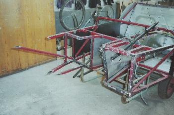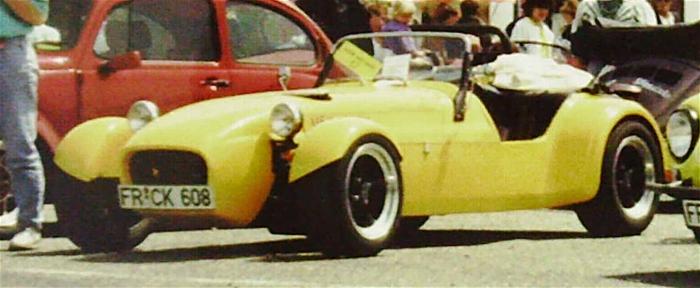 Längere Querlenker aus Ovalrohr brachten die Vorderachse auf das gleiche Ausenmaß. Etwa 12 Satz dieser Querlenker mit Nachlauf nach Kundenwunsch hab ich angefertigt bis die Sevenhersteller selbst lange anboten.