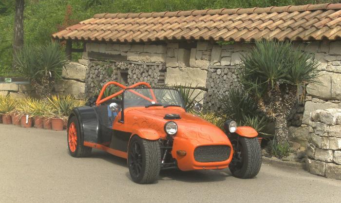 ab 2009 in orange, linksgesteuert mit kurz übersetzter Lenkung, mit OZ Ultraleggera Felgen, selbstgefertigtem Überrollbügel. Neue Windschutzscheibenhalter, neues Armaturenbrett mit KOSO-Instrumenten, neuer Kabelbaum, versenkte Rückleuchten